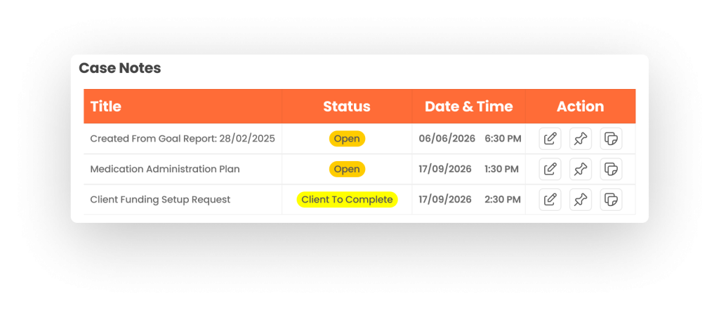 Personal details, NDIS numbers, funding status, client activity, automated alerts and so much more.