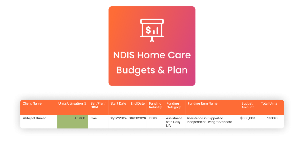 - Multi funding source support including NDIS, Support at Home, and custom budget tracking
