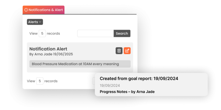 - Automated alert system for critical client information and care requirements